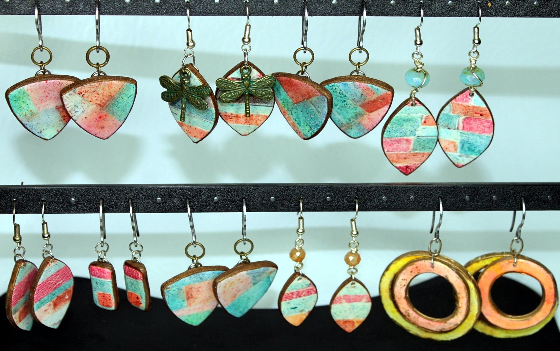 Little dragonfly messengers of changing seasons dance above beautiful striped marquise shapes in these enchanting autumnal earrings. Coral, aqua, and soft neutrals flow in layered bands, capturing the peaceful transition from summer's brightness to autumn's serenity. These whimsical earrings celebrate nature's gentle seasonal shift. Lightweight polymer clay with antique brass dragonfly charms and stainless steel ear wires.