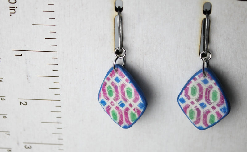 Crackle Glaze Diamond Tile Earrings